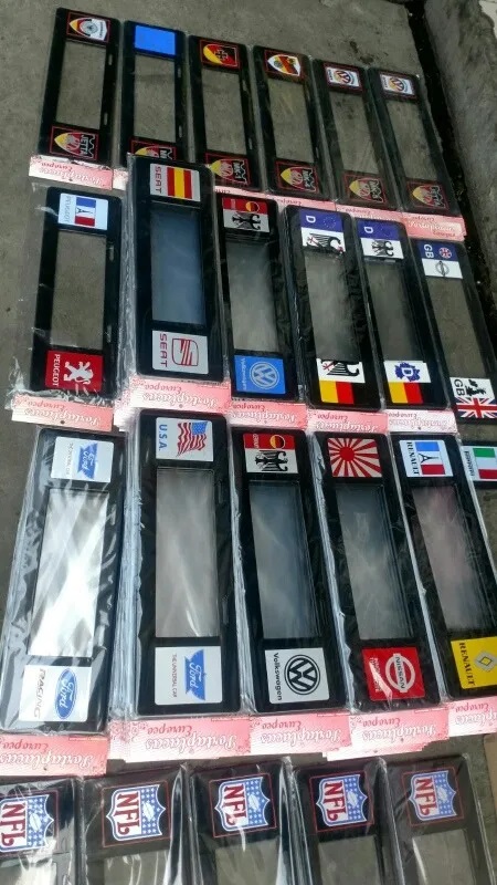 Porta placas con diferentes diseños de banderas de diferentes países y marcas de plástico resistente